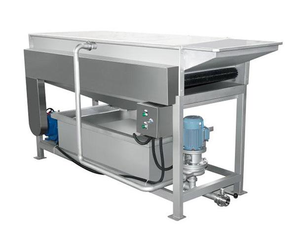 該設(shè)備適用于球形或長條圓形的果蔬清洗。果蔬原料在毛刷旋轉(zhuǎn)的推動下向前移動,洗凈度高。